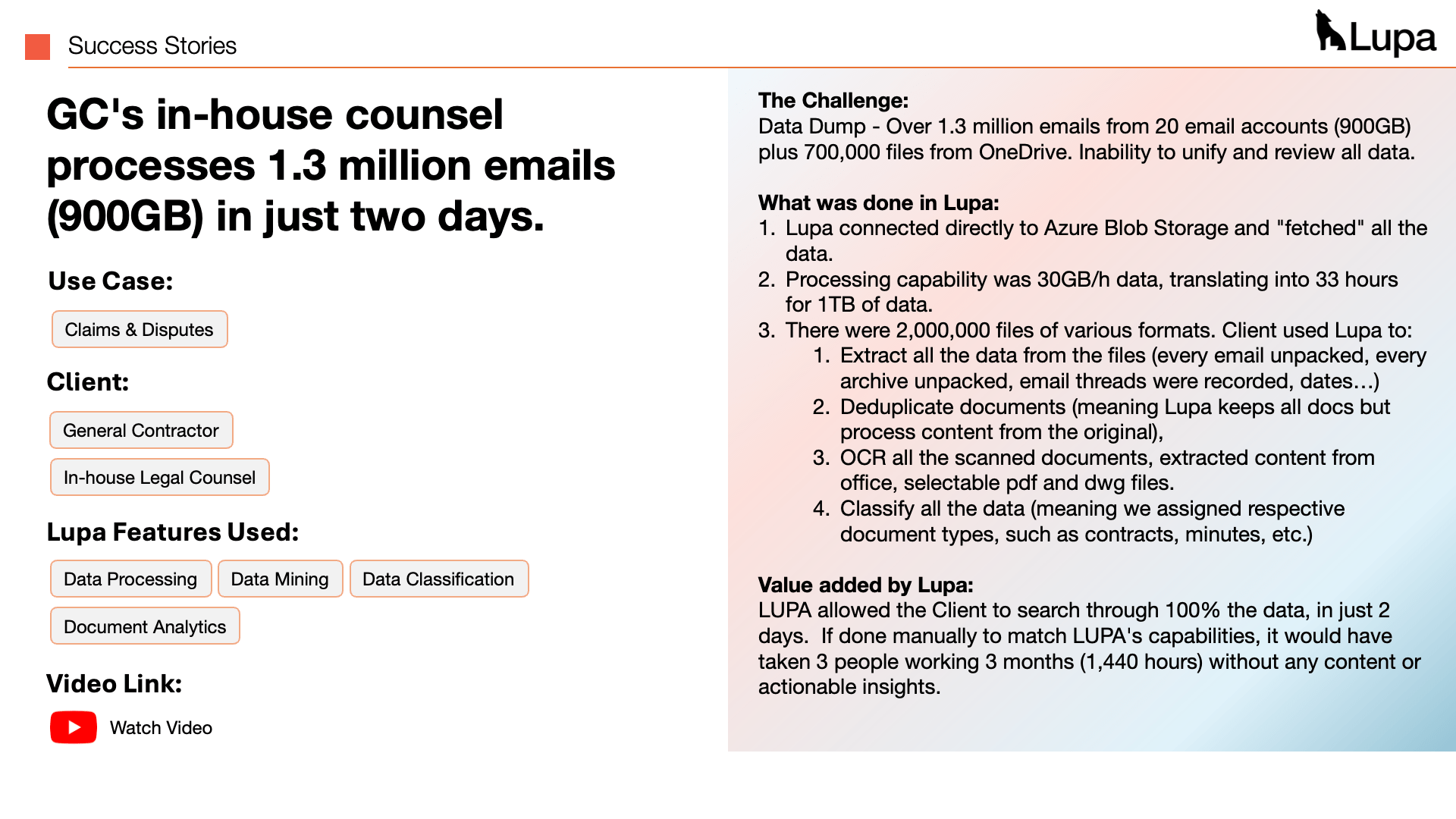 From C-levels, to managers, through to project staff – Lupa transforms your data into actionable insights that help prevent risks, deter claims and manage big data.